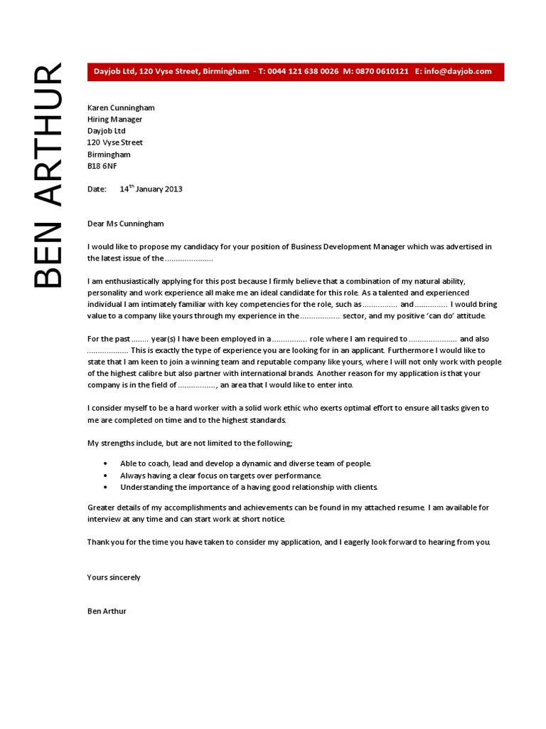 Sample business development cover letter. Business development cover letter sample. Better prepare your job applications before submitting. How to address a cover letter. Next, align your talents to the. Learn the tips and tricks to writing successful cover letters. List your address, email, phone number, and linkedin profile. Oct 31, 2019 · application for the position of business development officer. Writing a great business development manager cover letter is an important step in your job search journey. Better prepare your job applications before submitting. These professionals are responsible for securing new business deals and exploring opportunities. What to look for in a business development officer? How to write a cover letter for a business?